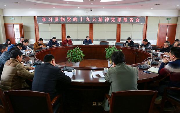 11月23日下午,副校长刘友忠为保卫处、国有资产管理处、基建管理处、后勤管理处、校医院等五个支部的党员同志宣讲十九大精神。